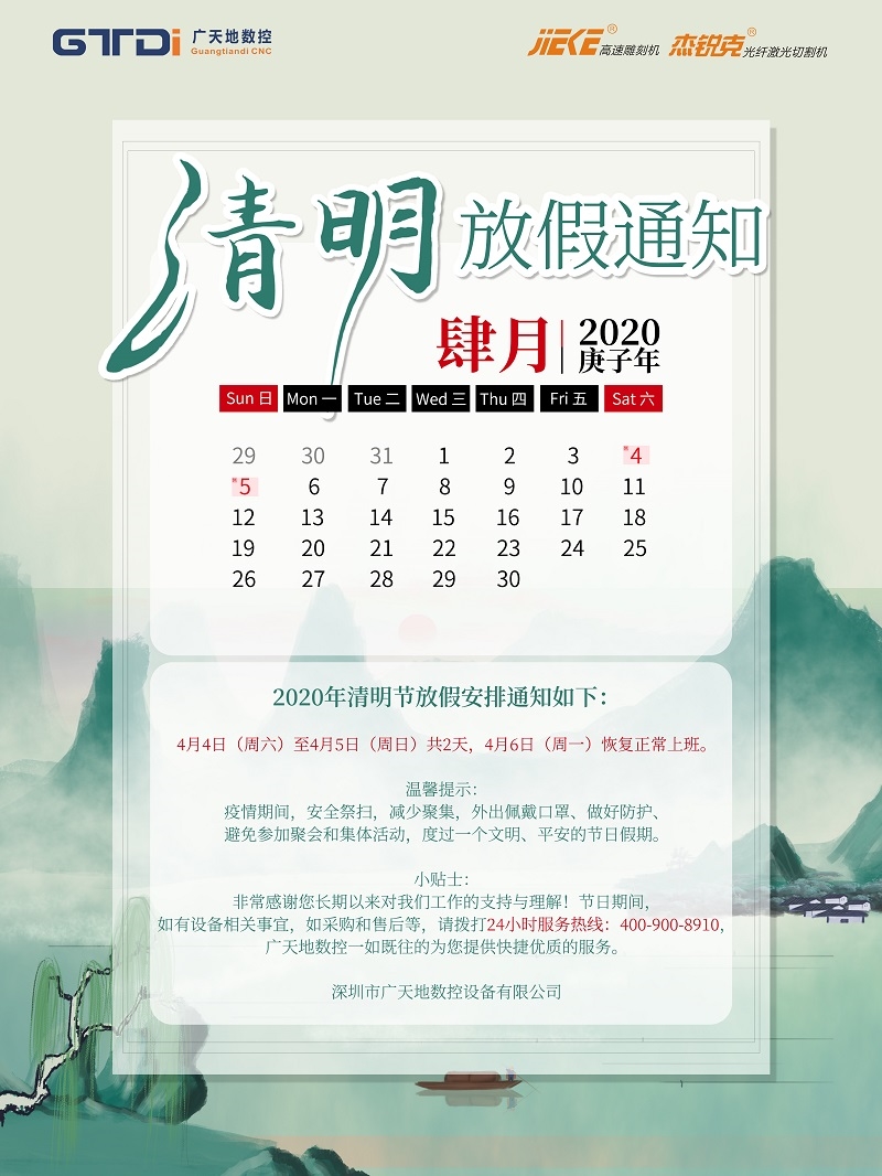 广天地数控2020年清明节放假时间安排